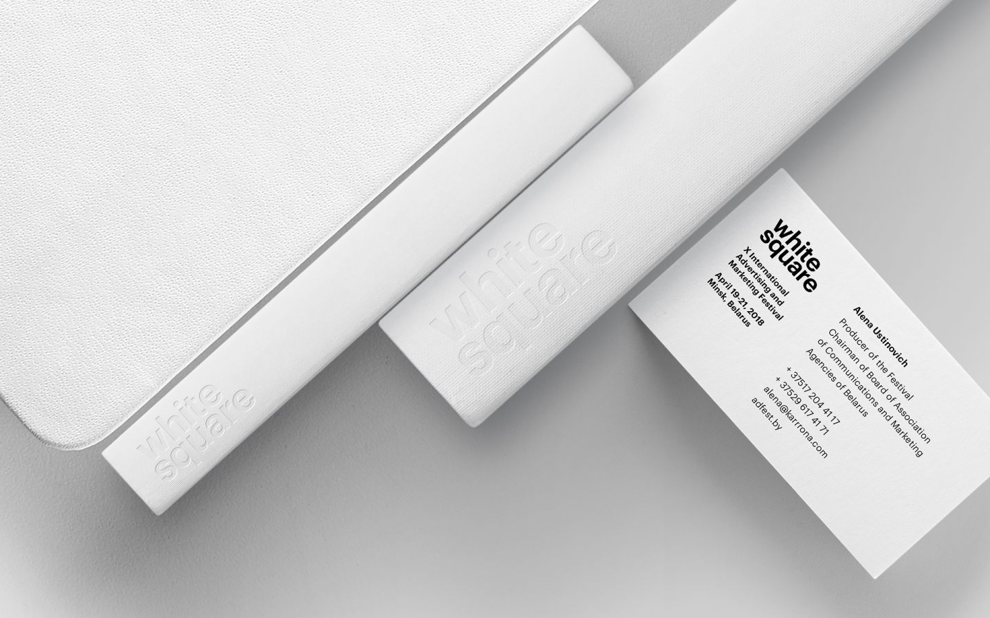 Кроме того, в концепции названия фестиваля просматривается историческая связь с художниками-авангардистами, которые славятся по всему миру. Фестиваль «Белый Квадрат» стал символом творчества в рекламе. Восстановив историческую справедливость и вернувшись к семантике «Белого квадрата» Малевича, фестиваль раскрыл в своей айдентике метафору «белое на белом» и сохранит элементы данного фирменного стиля в течение последующих лет.