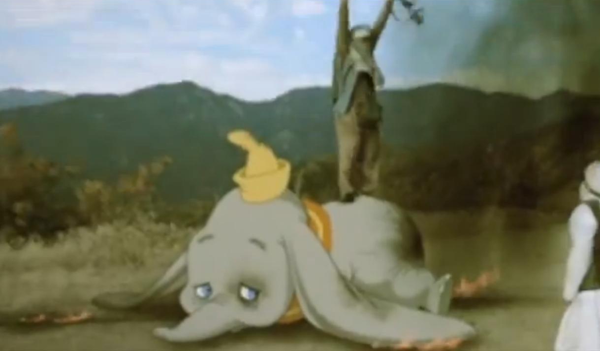 В соответствии с канонами подобных записей несколько мужчин в военной форме и традиционной арабской одежде стреляют в воздух, попадают в некий объект и торжествующе кричат «Аллах акбар». Однако в роли подбитого летательного аппарата оказывается слоненок Дамбо, созданный студией Disney.