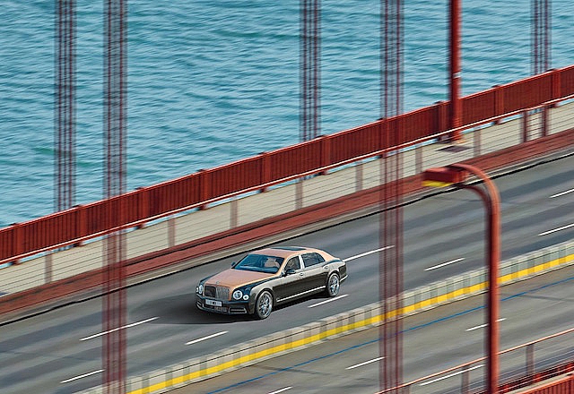 На сайте производителя размещена фотография моста «Золотые ворота» в Сан-Франциско. С помощью колесика мышки можно долго зуммировать снимок, на котором в конечном счете появляется новый Mulsanne EWB. В итоге, от общего плана моста можно дойти до логотипа Bentley, который расположен на кресле автомобиля.