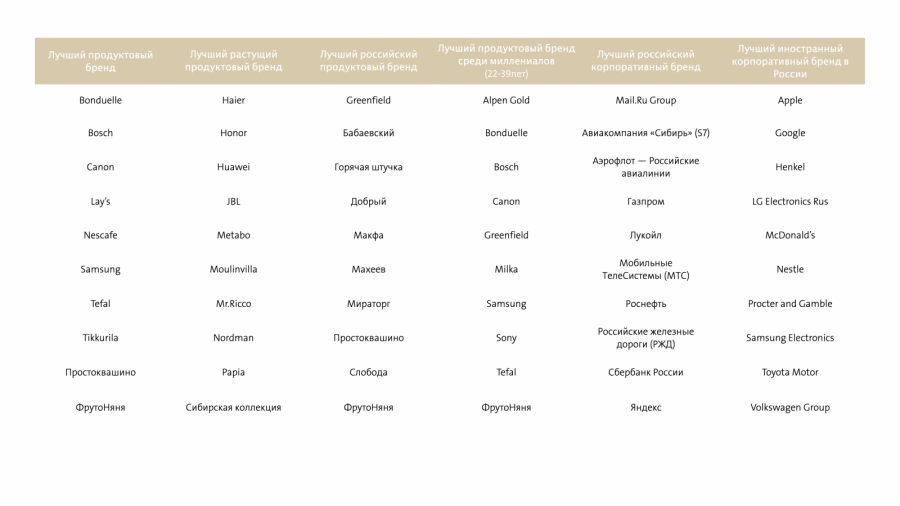 В номинации участвуют те же категории и бренды, что и в номинации «Лучший продуктовый бренд».