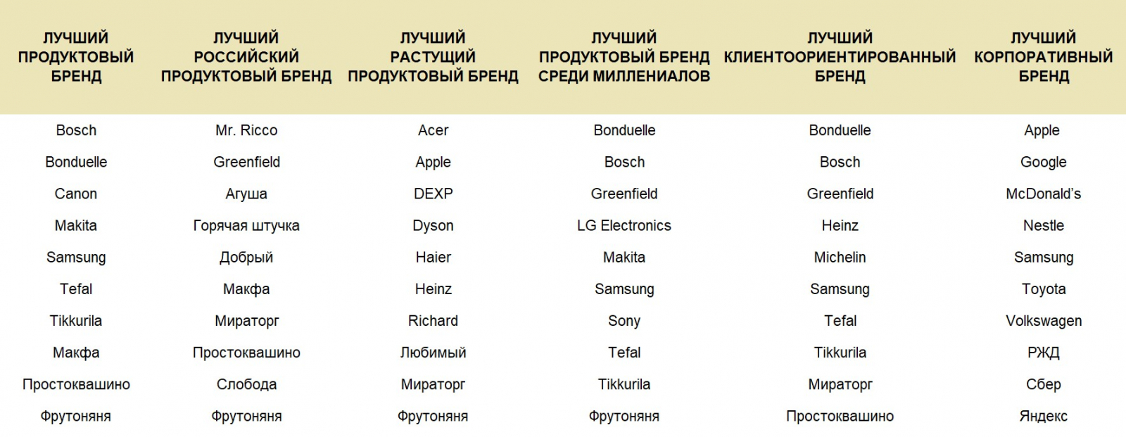 В топ-10 брендов попадают первые из лучших, за кого потребитель проголосовал и рублем, и сердцем. Это признание со стороны покупателей — показатель правильно выбранного пути и продуманной маркетинговой политики.