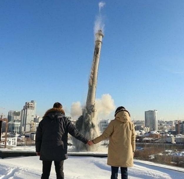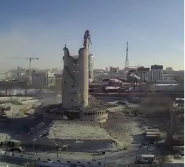 Екатеринбургскую телебашню взорвали 24 марта. Башня разрушилась не полностью, сперва она осела, а потом упала на специально подготовленную насыпь на берегу Исети.