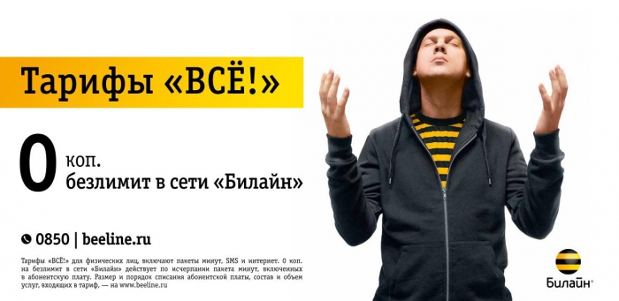 В новой кампании оператора задействованы ТВ, наружная реклама и интернет. Напомним, что оператор сотовой связи Билайн занимает двендацатую позицию в списке крупнейших рекламодателей России согласно рейтингу Sostav.ru.