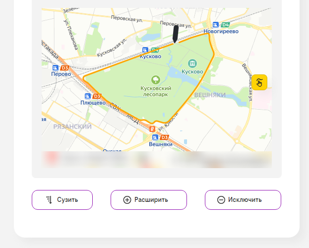 Возможность таргетироваться на определённую территорию в «Билайн.Продвижении» существовала и раньше. Для этого можно было выбрать точку и указать радиус вокруг неё — например, 500 метров. В результате в сегмент попадала аудитория в заданном круге.