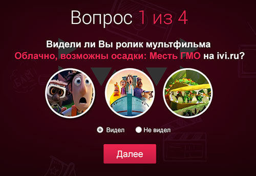 2. Опрос пользователей ivi.ru. Период: октябрь 2013 г., в течении недели после завершения рекламной кампании.