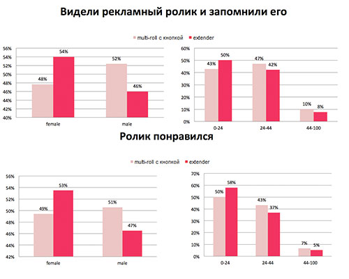 Более глубокий анализ рекламных форматов позволил дополнительно выявить особенности восприятие в группах женщины/мужчины и молодежь/среднее поколение: