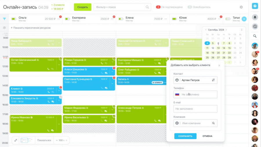 «Онлайн-запись» — сервис для бронирования, который позволяет составить расписание занятости специалистов, оборудования и помещений.