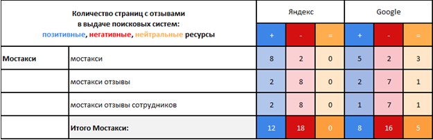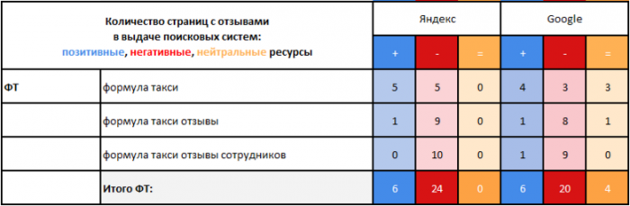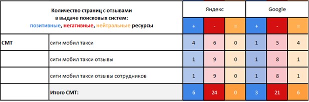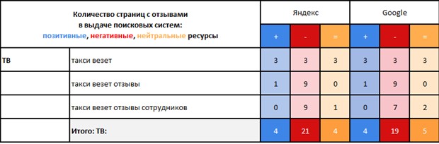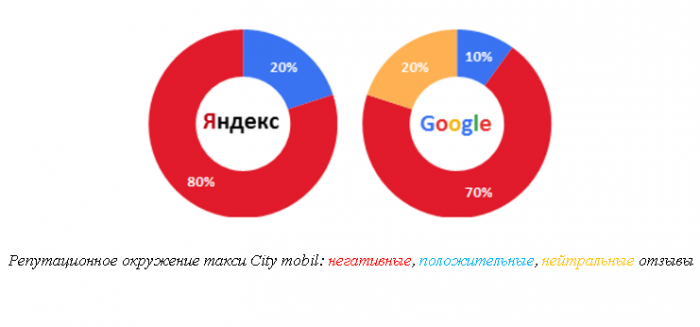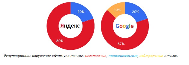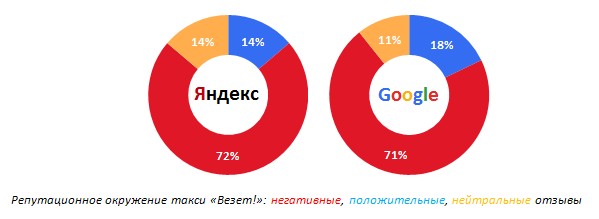 Анализ поисковой выдачи по ключевым запросам пяти служб столичных такси дал неутешительные результаты. Складывается ощущение, что все компании работают из ряда вон плохо. Однако это не так: просто довольные клиенты пишут отзывы гораздо реже, чем возмущенные. Но потенциальные пассажиры могут сделать поспешные выводы, не вникая в статистику, и выбрать другого перевозчика. Вот почему так важно работать над своей репутацией в сети.