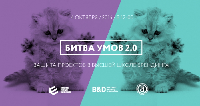 4 октября 2014 года в Высшей Школе Брендинга состоится открытая защита курсовых студенческих проектов. Студенты ВШБ в составе пяти групп примут участие в Битве Умов 2.0 – соревновании на звание лучшей команды курса. Цель состязания – защита реальных бренд-комплексов перед клиентами, судьями, и экспертами рынка.