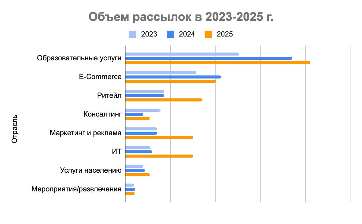 С развитием технологий и их доступностью конкуренция почти во всех сферах становится сильнее. На протяжении 2023−2025 годов мы наблюдаем тенденцию перехода от количества лидов к качеству работы с ними. Компаниям важно не бездумно увеличивать объем обращений за счет кратного роста маркетингового бюджета, а улучшать процесс общения с клиентами и повышать уровень сервиса. Продолжением данной стратегии является работа по удержанию и сохранению клиентской базы, о чем косвенно свидетельствует увеличение числа сервисных и информационных рассылок.