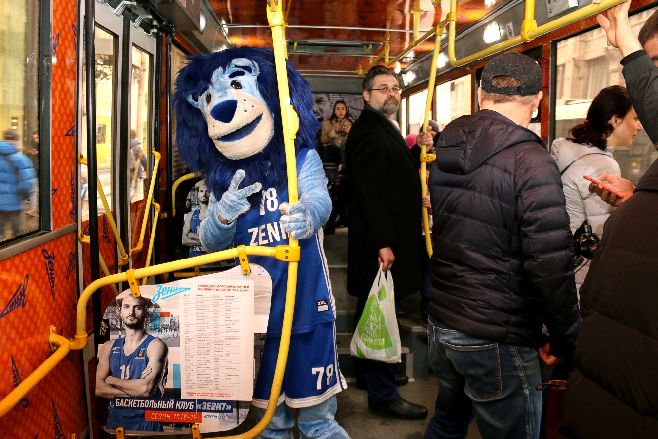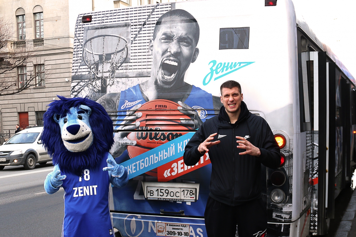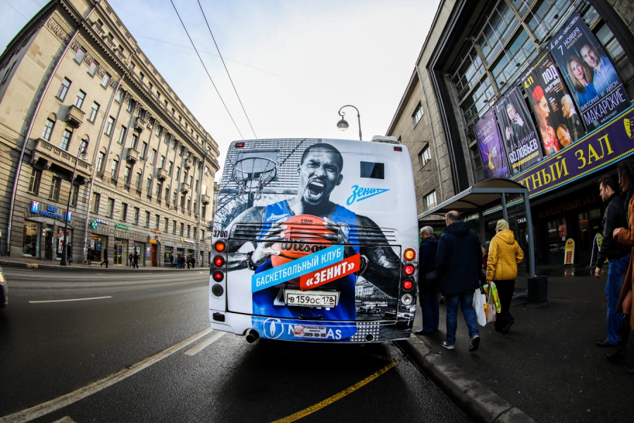 В марте баскетбольный клуб «Зенит» при содействии оператора рекламы на транспорте TMG провел яркие промоакции на рейсовых автобусах Петербурга, полностью брендированных фирменной символикой клуба снаружи и внутри.