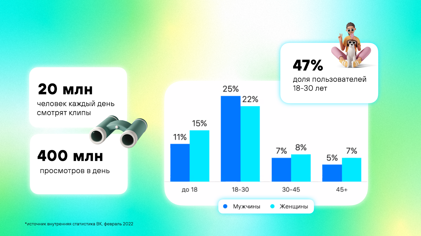 Продолжают занимать свою нишу и удерживать женскую ЦА в возрасте 35+. Платформа располагает широким выбором форматов для размещений: от классических фото и видео интеграций до кастомных реакций, мини-приложений, создания брендированных открыток, стикеров и много другого.