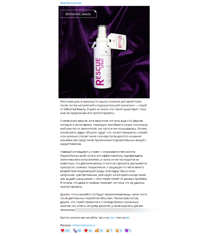 Почему это работает: люди верят историям, а не рекламе. Если блогер добавляет в пост информацию о себе и искренне увлечен товаром, его аудитория захочет такой же.
