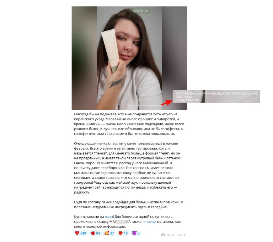 Если блогер хвалит ваш товар за деньги, но не сообщает об этом подписчикам — это не просто нечестно, но и незаконно. В 2022 году начал действовать закон о маркировке рекламы, согласно которому нужно маркировать любое упоминание товара или услуги за вознаграждение (деньги, бартер, бесплатные образцы).