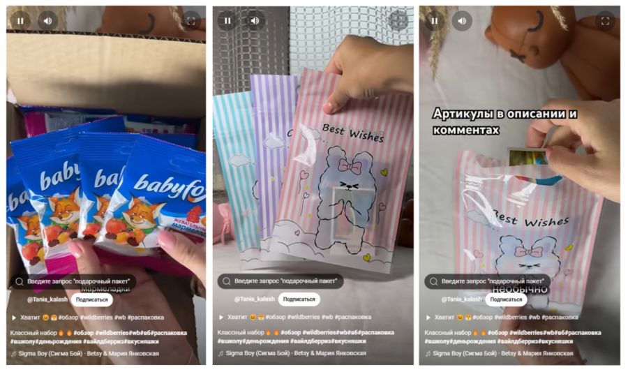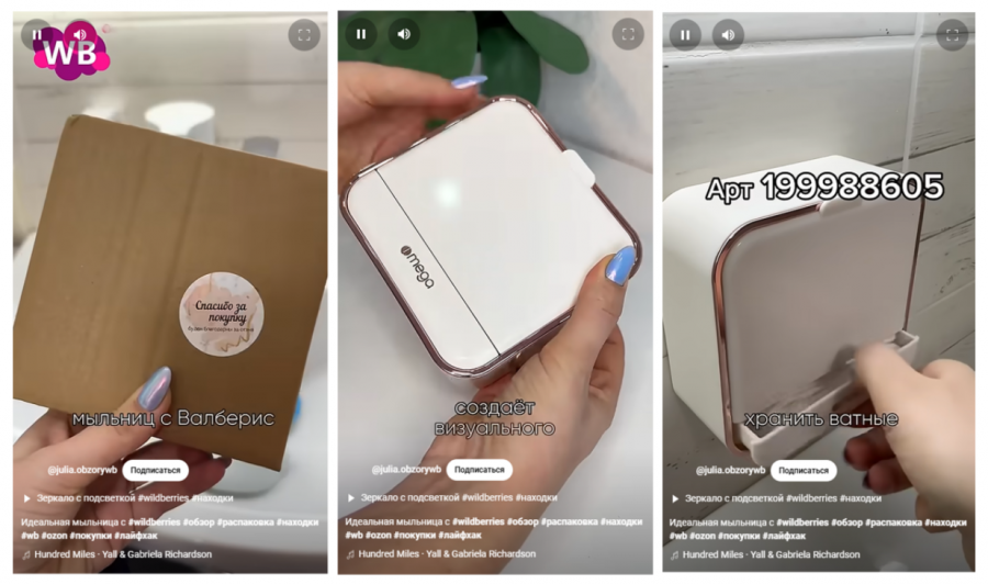 Что это: короткие вертикальные видео на различных площадках с вашим товаром. Вариантов подачи множество: «Смотрите, что мне пришло!» (распаковка посылки с маркетплейса), «Мой топ-3 товаров месяца» (ваш продукт в подборке), «Проверяю товар» (быстрый тест-драйв) и др.