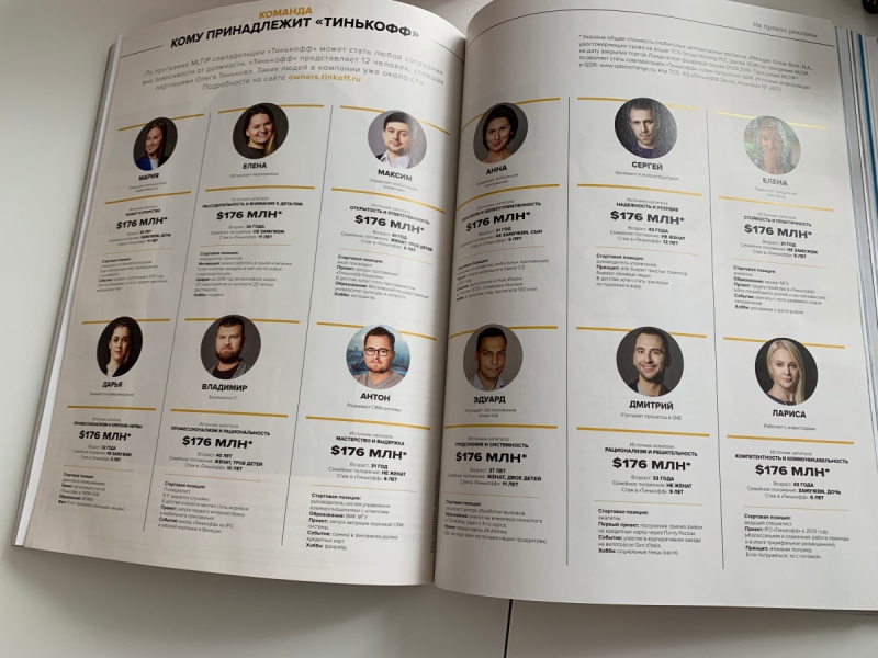 Так, на одной странице журнала появился список из самых состоятельных водителей сервиса, а на другой — совладельцы «Тинькофф Банка».