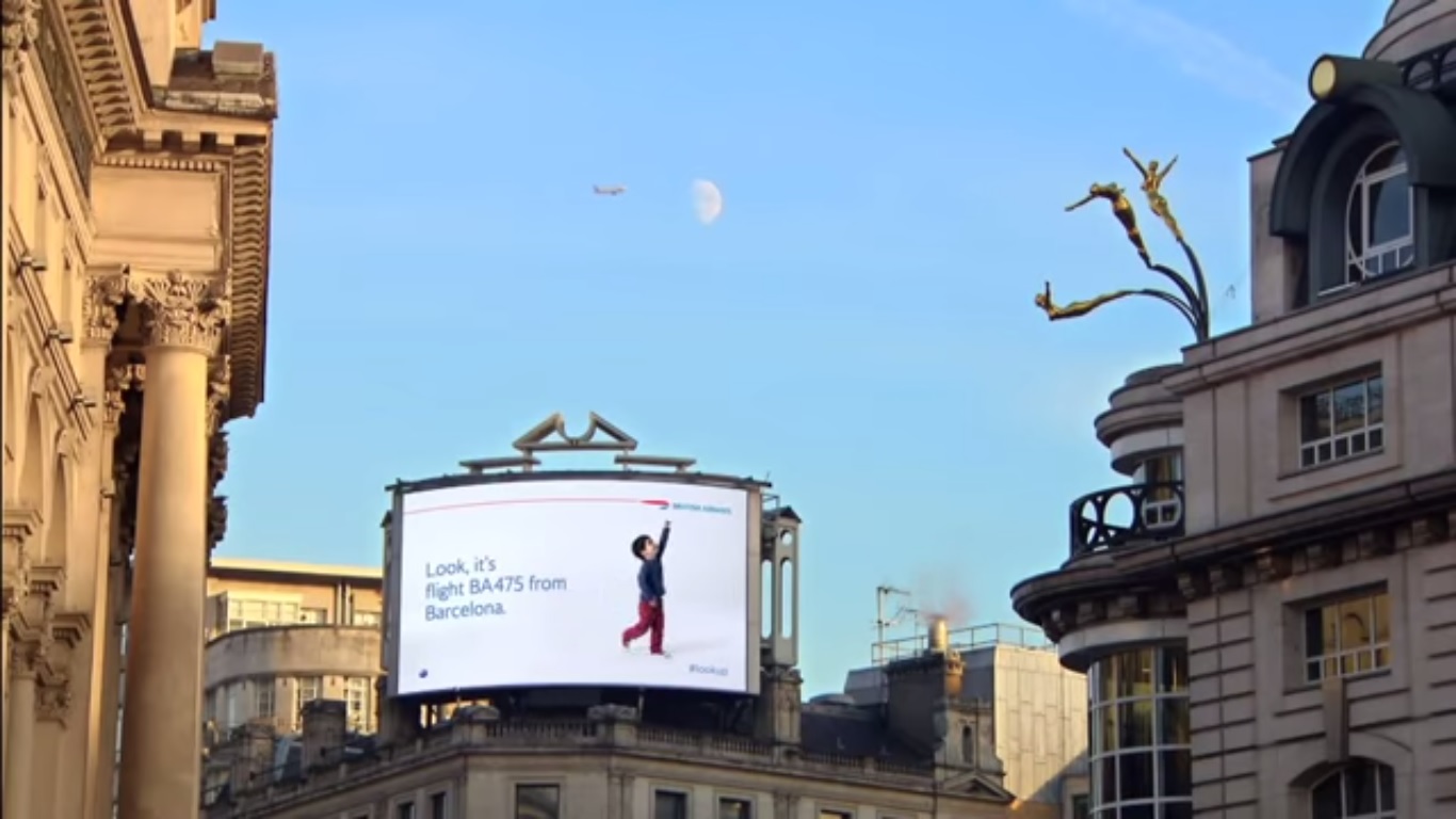 Цифровые конструкции оживали, когда над ними пролетал воздушное судно British Airways. На экране появлялся мальчик, протягивал руки и следовал за самолетом. Билборд высвечивал номер рейса и город, откуда совершается полет.