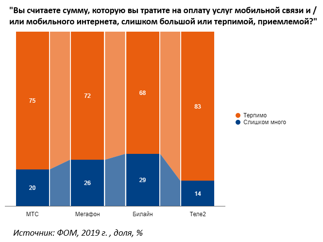 Доли рынка основных игроков рынка сотовой связи близки: 37% у МТС и от 25% до 23% у «Мегафона», «Билайн» и «Теле2», соответственно. А вот расстановка компаний по доле удовлетворенных клиентов выглядит иначе: у «Теле2» 93%, у «МТС» — 87%, «Мегафон» — 85% и «Билайн» — 74%. С чем это связано?