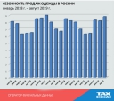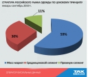 С января по сентябрь 2019 года большинство покупателей предпочли приобретать одежду в масс-маркете, их доля составила 59%, сообщается в исследовании ОФД «Такском». На премиум-сегмент в этом году пришлось 11% продаж, а на среднеценовой — 30%.