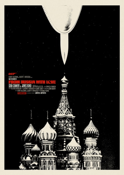 Для создания постеров он пересмотрел все фильмы об агенте 007 и выбрал оттуда ключевые визуальные элементы, будь то предметы, оружие, локации, узоры или просто цвет. Все плакаты должны были отличаться друг от друга, но при этом создавать ощущение единой авторской работы.