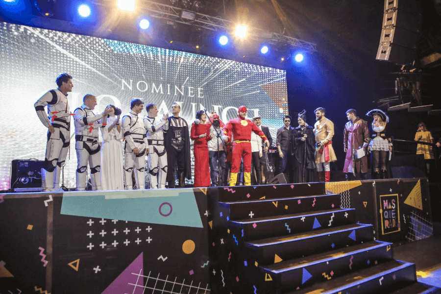 Как прошел корпоратив в этом году? Посоветовались с коллегами, сошлись на формате тематического вечера, посвященного кино. Обеспечили антураж одновременно съемочной площадки и кинотеатра. Соответственно, и награждение оформили в духе вручения «Оскара»: с конвертами, конферансом и прочими атрибутами. И коллеги отлично поддержали формат костюмами киногероев.