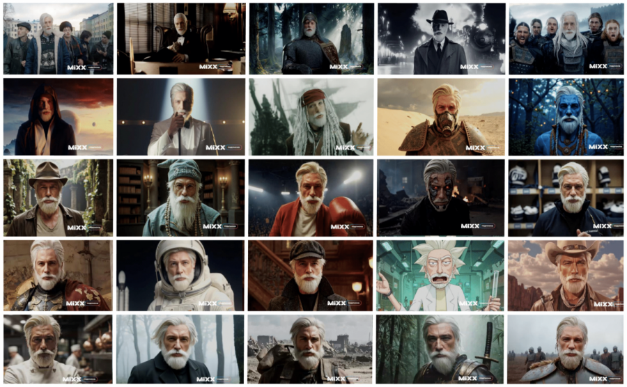Треть образов сняли на площадке. Остальных сгенерировали с помощью нейросети и адаптировали под стиль выбранных фильмов. Чтобы добиться нужного результата, специалисты студии графики Dobro провели больше 10 тыс. генераций видеофрагментов.