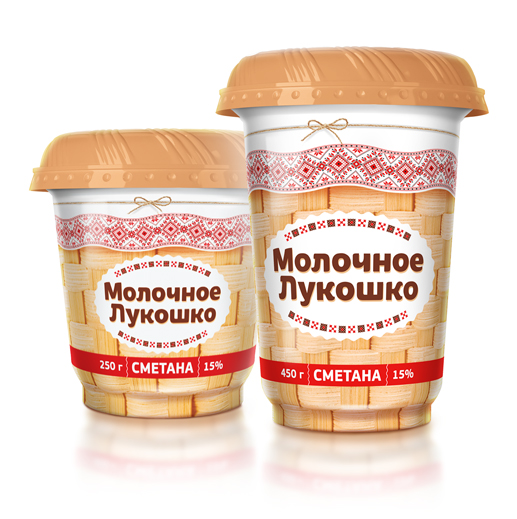 Такие детали, как имитация скатерти с традиционным орнаментом, бечевка с бантиком и салфетка в основании брендблока создают целостный и понятный потребителю образ, уверены дизайнеры. Команда стремилась сделать визуальный образ упаковки максимально понятным и доступным инструментом донесения идеи бренда. 15% сметана фасуется в пластиковые 250 и 450-граммовые стаканчики с платинкой и крышкой.