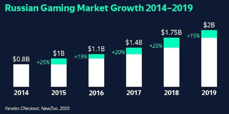 По данным исследования Yandex и Newzoo, объем игрового рынка в России на 2019 год достиг $2 млрд с ростом в 15%. Аналогичная динамика сохранится и в 2020 году и даже улучшится — рост составит не менее 20%-30%, считают эксперты.