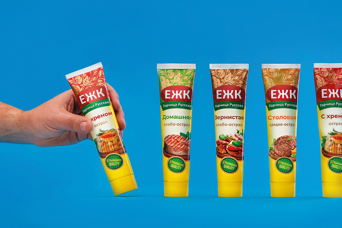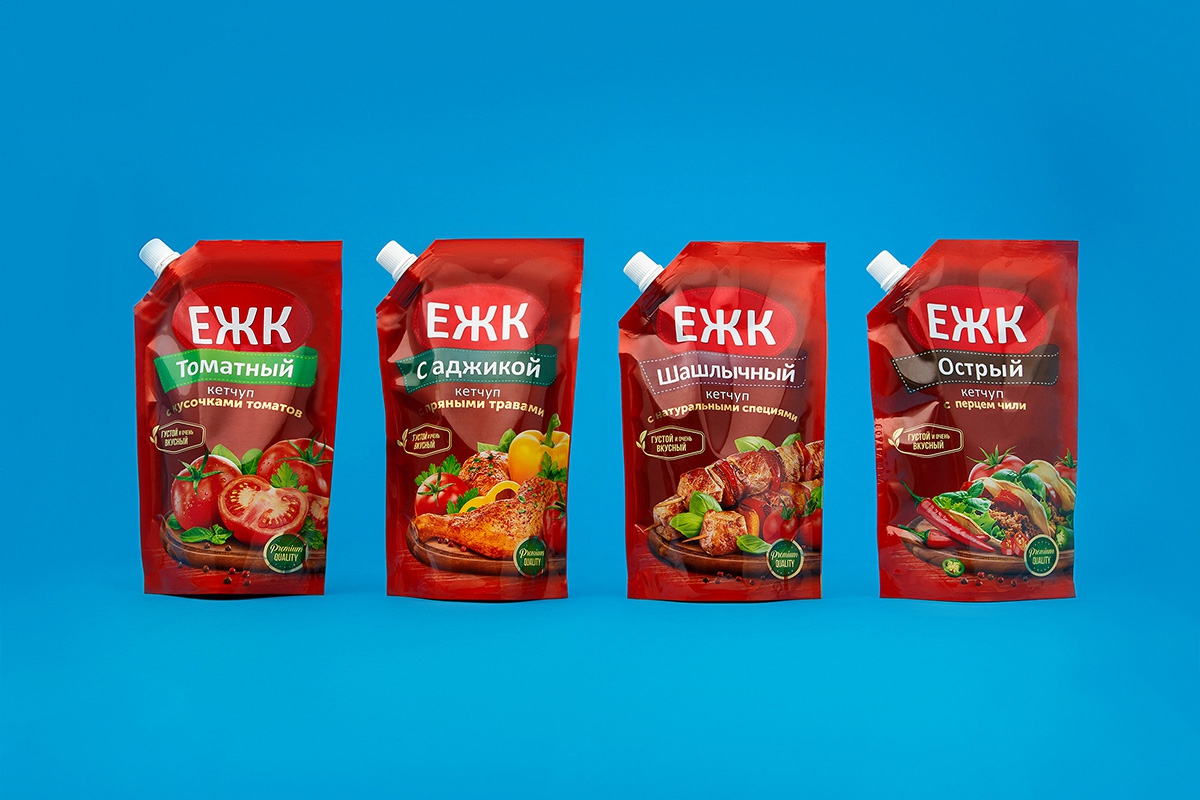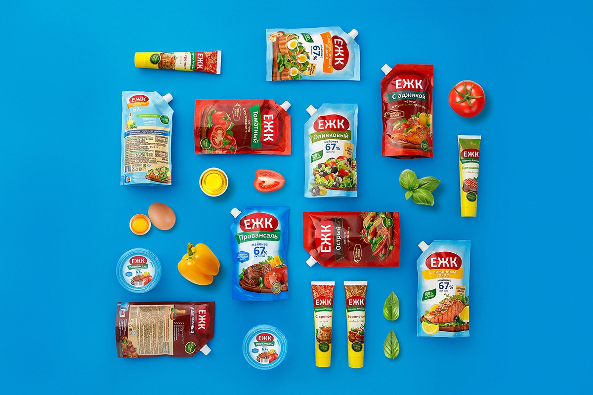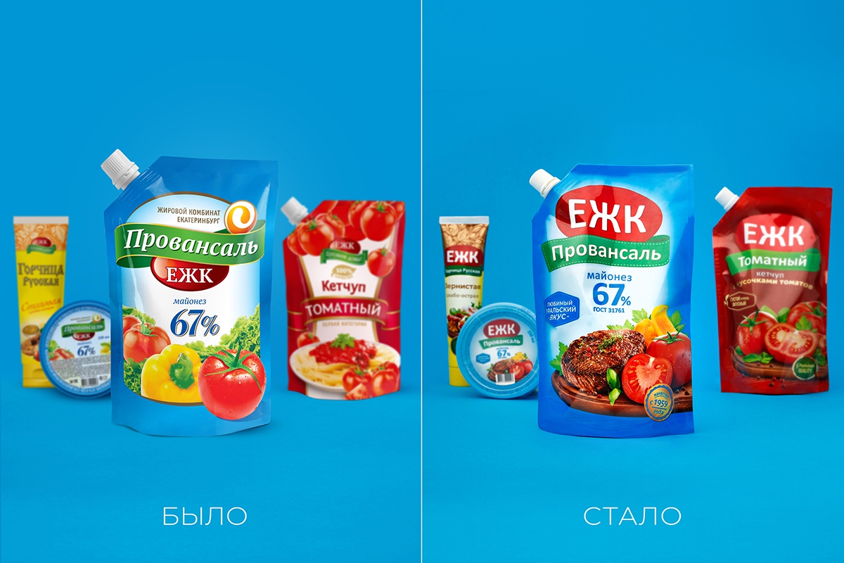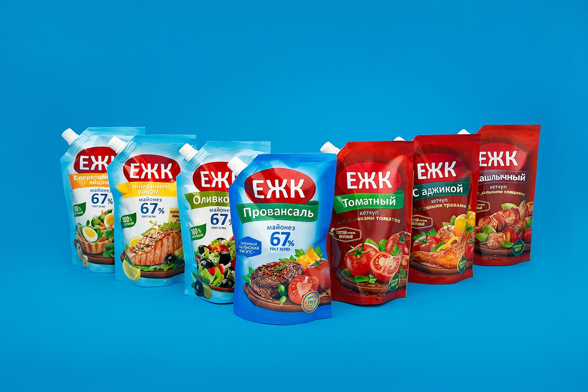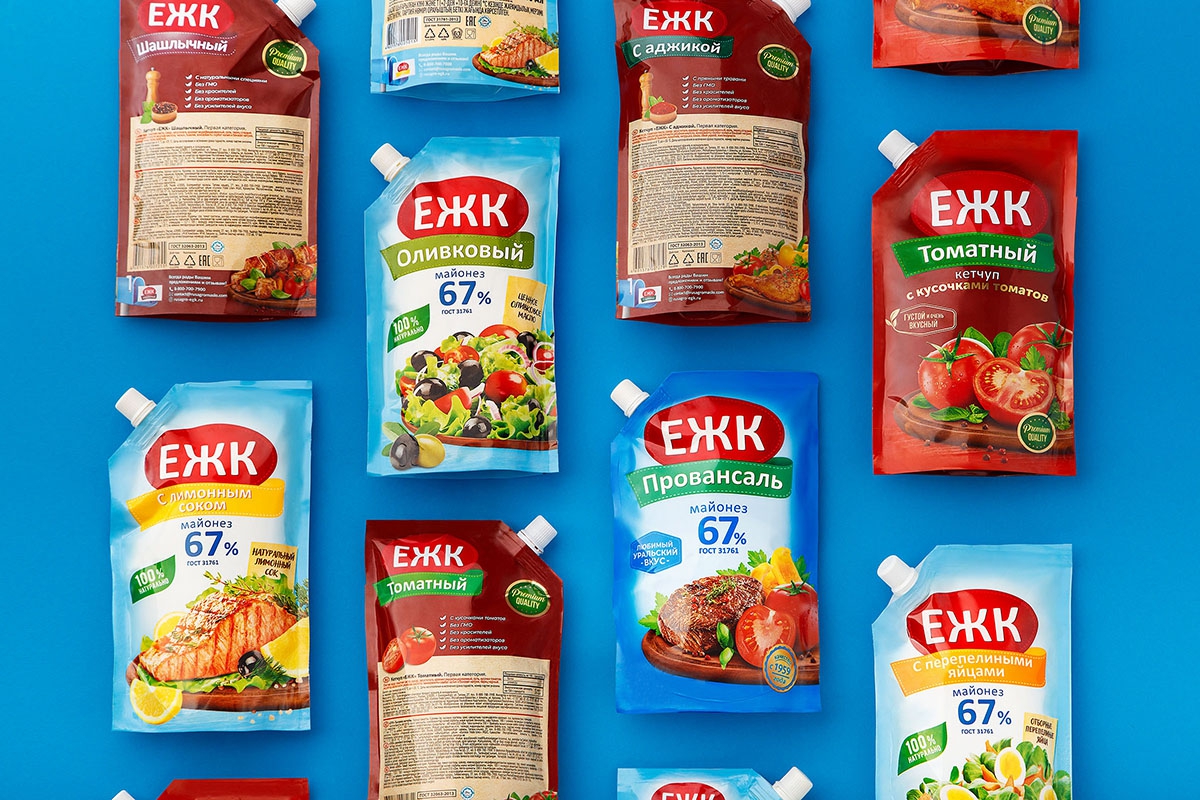 ОАО «Жировой комбинат» из Екатеринбурга пришел к Fabula Branding с двумя торговыми марками: «ЕЖК. Готовим дома!», под которой выпускались горчица и кетчуп, и «Провансаль ЕЖК», сосредоточенной на майонезах. Обе уже собрали лояльную аудиторию, и следующим маркетинговым шагом было объединение их под зонтичным брендом. Процесс требовал создания новой адаптивной дизайн-системы для всех видов упаковки — дой-пака, стакана, тубы