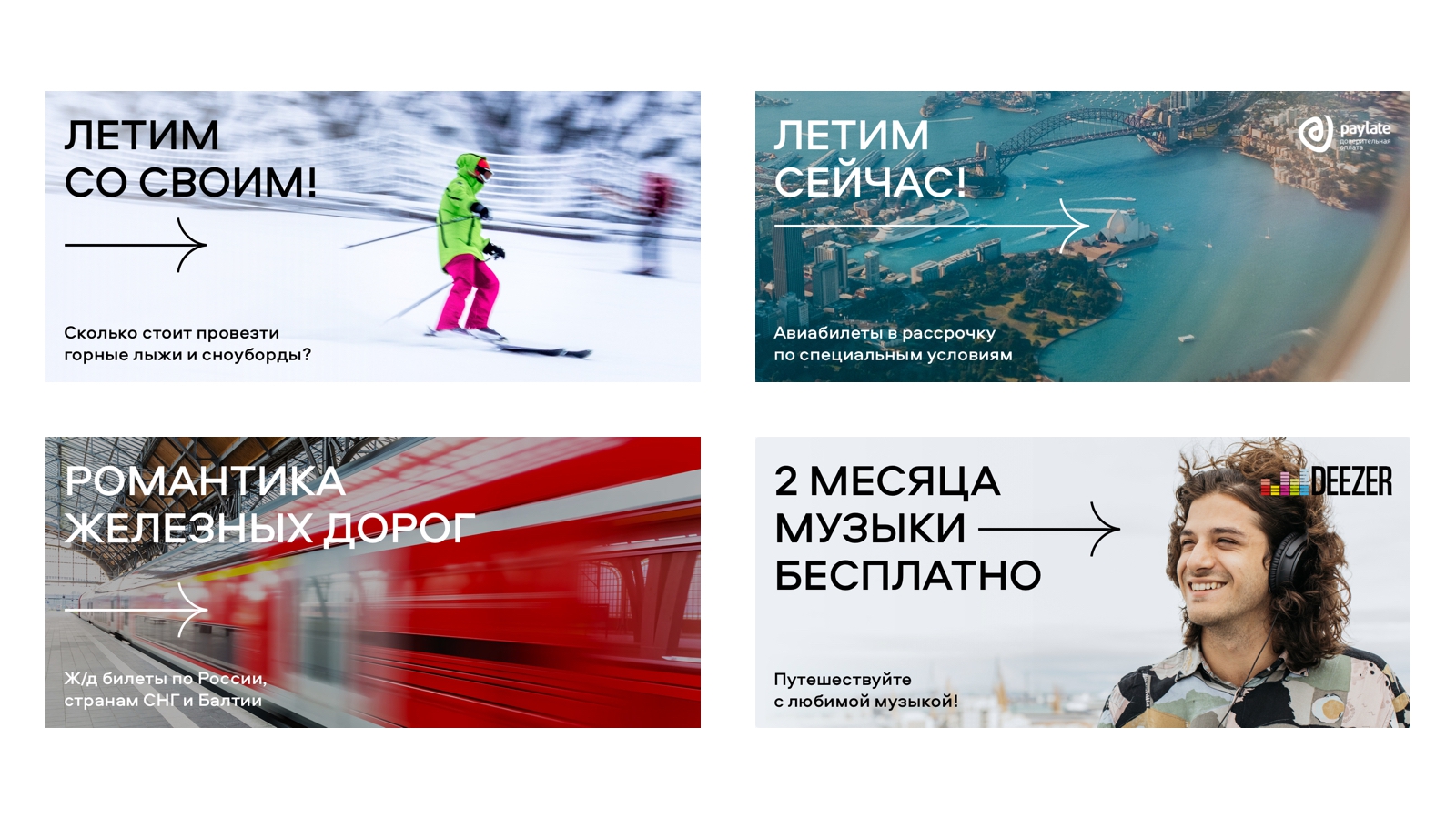 Главным визуальным элементом стала стрелка. Именно этот графический элемент является неотъемлемой частью поездки. Стрелкой обозначается навигация в аэропорту, на вокзале или городе. Стрелка определяет направление движения и с ее помощью можно обыгрывать различные виды транспорта, а также символизирует гибкость и удобство.