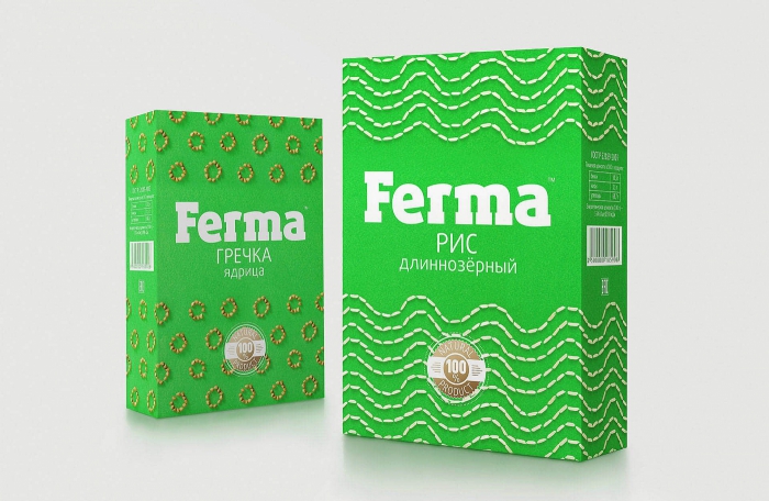 «Мы решили поддержать популярный сегодня тренд на экологичность и выделить продукцию за счёт нетипичной для данной категории упаковки. Зеленый цвет был выбран как основной; в оформлении бакалейной продукции он используется редко. Ведь настоящая ферма – это там, где вокруг поля и луга, и зелень, и счастье», - рассказали о проекте в агентстве.
