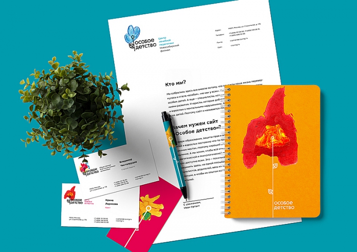 Название «Особое Детство», выбранное агентством, уже давно носит тематический интернет-портал, созданный ЦЛП. Кроме того, такое наименование сразу акцентирует внимание на целях организации. Для фирменного стиля бренда в агентстве выбрали тему цветов - это отражение идеи, что если «дети – цветы жизни», то особые дети – это точно такие же цветы, только особенные.