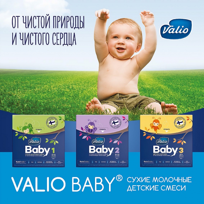 На рынке детского питания появился новый игрок: финская компания Valio объявила о старте продаж в России детских молочных смесей Valio Baby. Упаковку новой линейки продуктов разработало финское агентство SEK. За визуальную концепцию и слоган «От чистой природы и чистого сердца» отвечала команда агентства Saatchi & Saatchi.