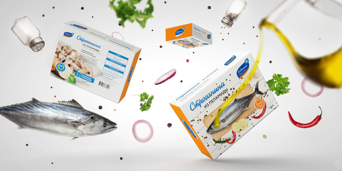 Так как продукт фактически представляет собой сырую рыбу, в качестве упаковки авторы выбрали термоколбокс, который поможет избежать дефростации при транспортировке. Помимо самой строганины в упаковке находятся пакетики с солью, перцем, уксусом и растительным маслом.