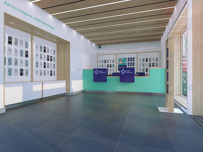Идея фирменной графики — «Видим технику насквозь» представляет собой невидимый луч, который просвечивает технику и позволяет увидеть внутренние компоненты. Элементы фирменных "микросхем" можно комбинировать, создавая новые паттерны, которые по задумке дизайнеров останутся узнаваемыми и помогут безошибочно идентифицировать бренд на любом носителе. Для сервисных точек были созданы модульные решения для оформления интерьеров.