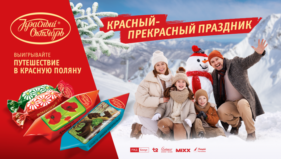 В этом году компания «Объединенные Кондитеры» организовала самое масштабное промо за всю историю бренда «Красный Октябрь». Рекламная кампания охватывает не только традиционные весовые конфеты, но новогодние подарки и другие категории любимых сладостей бренда «Красный Октябрь». Это позволит значительно расширить ассортимент, задействованный в акции, и привлечь максимальное количество покупателей.