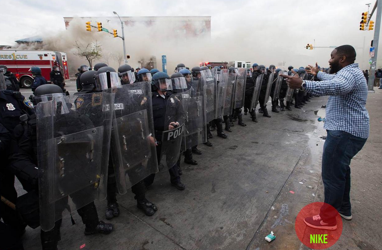 Российские дизайнеры запустили цифровой проект на злобу дня – сайт о жизни брендов в брутальной и жестокой среде уличных беспорядков. Поводом, естественно, стал бунт чернокожих обитателей Балтимора против полиции, третий день не сходящий с главных страниц мировых СМИ.