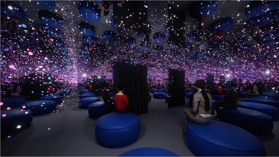 Зона для мам была построена как отдельная зеркальная комната из россыпи огоньков, где можно отдохнуть от суеты.