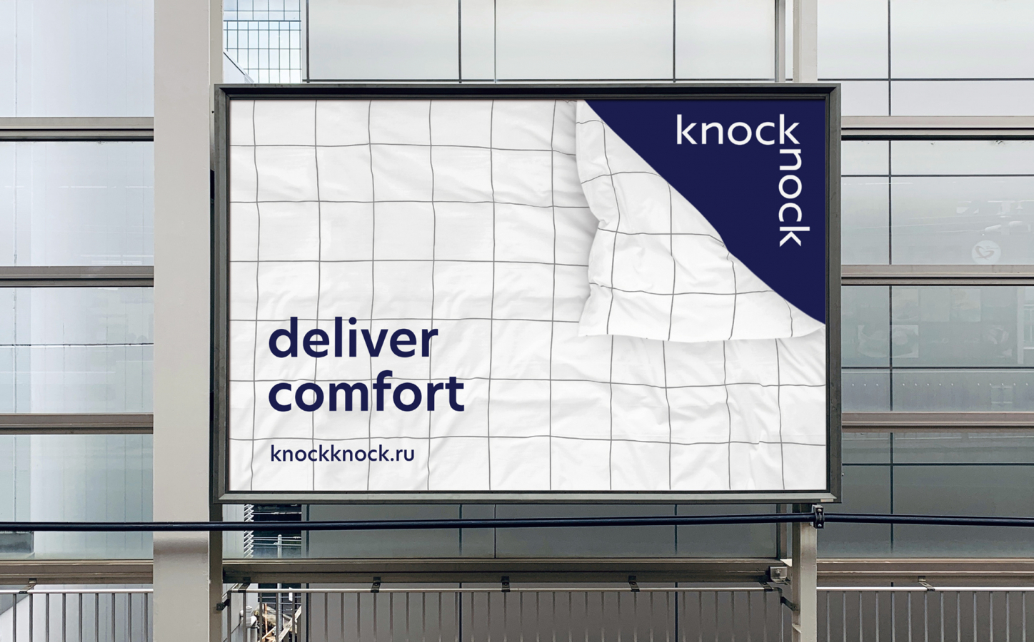 Стук в дверь стал метафорой, которая легла в основу позиционирования. Knock Knock — бренд, который доставляет комфорт в дома своих покупателей. «Стучится, когда вам нужен уют», — уточняет команда проекта.