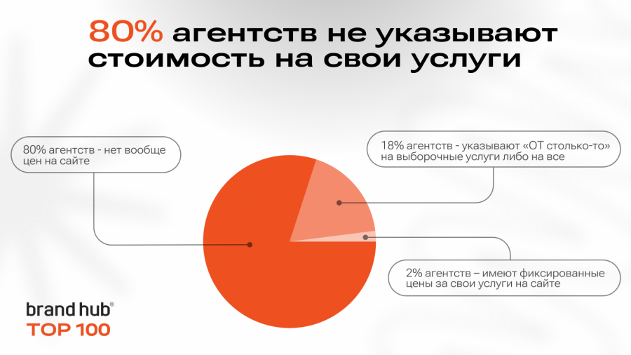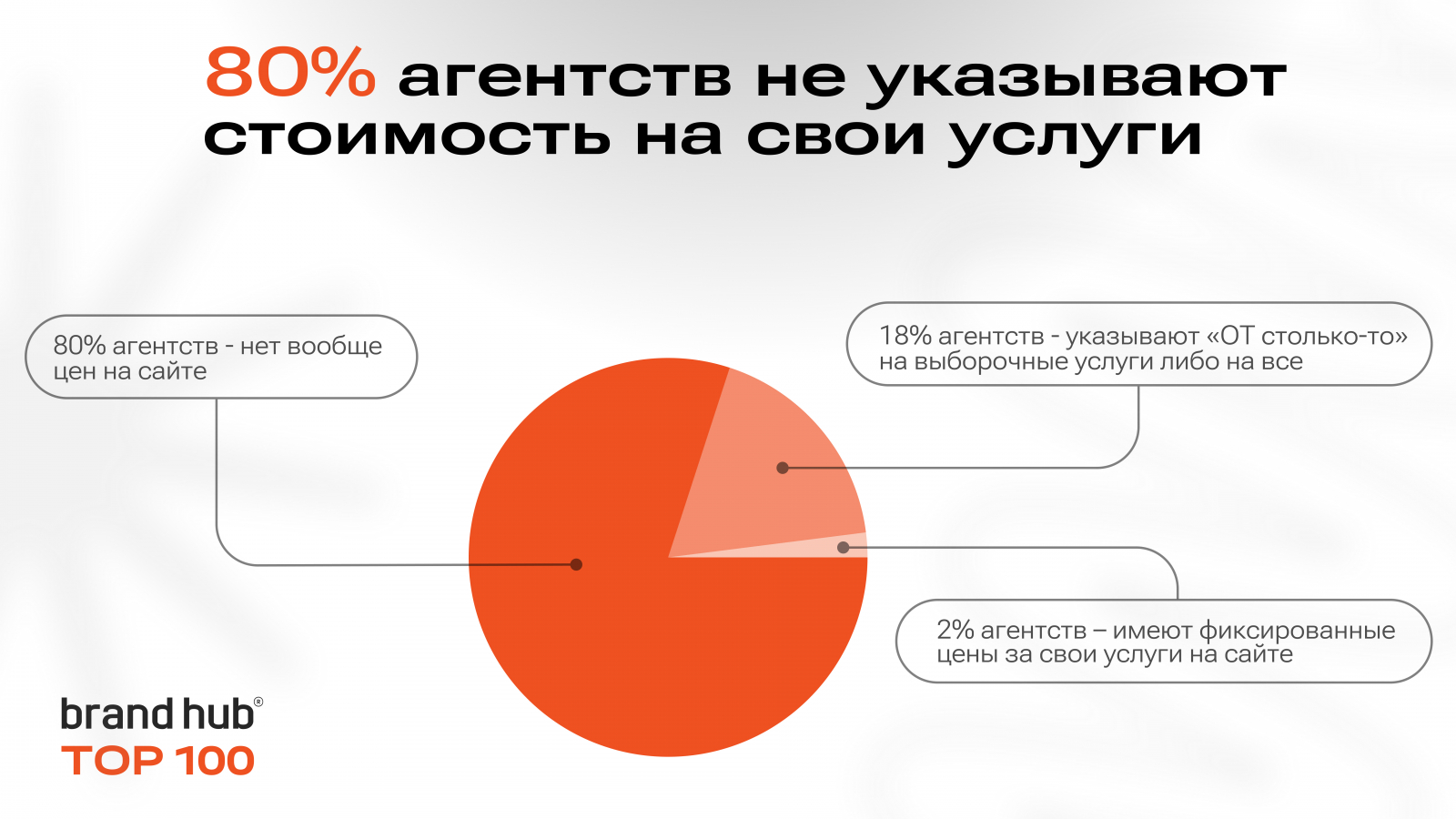 В сравнении с результатами рейтинга Brand Hub top50, которые мы опубликовали год назад в статье «8 из 50 агентств показывают цены за свои услуги», можно проследить положительную динамику. Благодаря проведенному анализу, агентства все больше стремятся показать себя, свою прозрачность и открытость.