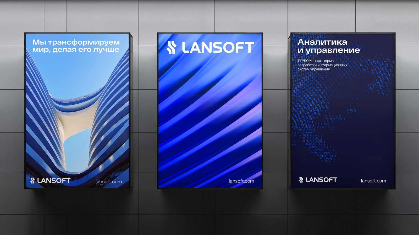 Агентство LINII создало бренд-архитектуру для IT-холдинга LANSOFT, который объединил платформенные решения в сегменте корпоративного софта: «ТУРБО», LDM, BPMSoft и Goodt. Основная идея визуализации бренда LANSOFT — переход от реального мира к цифровому. В фиджитал-реальности границы между ними стираются, что отражено в фирменной айдентике. Главный визуальный прием — перенос виртуальных элементов в реальность, где фрагменты кода используются как паттерн, символизируя бесшовную интеграцию технологий.