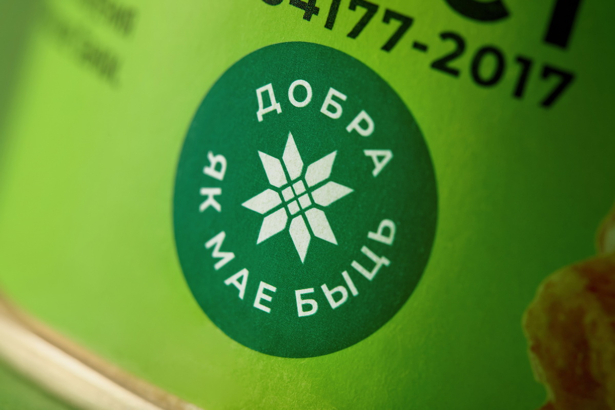В процессе работы рассматривались различные варианты оформления упаковки, включая концепты с контрастной палитрой и яркими элементами. В итоге был выбран минималистичный стиль с насыщенными оттенками зеленого и синего, массивным шрифтовым логотипом и точечными фотодеталями. Этот дизайн продолжает развивать коммуникационный посыл марки «Добра, як мае быць».