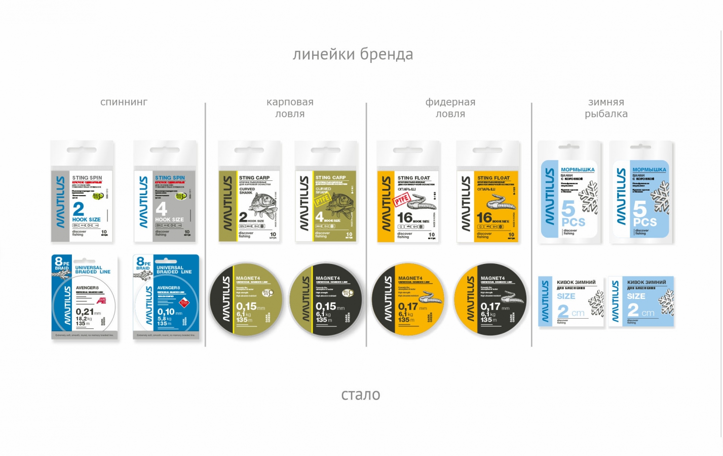 За два года ассортимент товаров Nautilus значительно расширился как в бюджетном сегменте, так и за счет появления более дорогих, узкоспециализированных, нишевых SKU. Потребителю стало сложно ориентироваться в широком разнообразии товаров для разных видов рыбной ловли, и перед заказчиком снова встал вопрос позиционирования бренда.