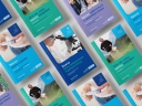 В разработанной айдентике используется довольно узкий цветовой спектр, что в очередной раз подчеркивает лаконичность подхода и простоту пользования фирменным стилем. В основу заложены розовый, голубой и зеленый цвета, а также оттенок золотого — для оформления премиальных линеек.