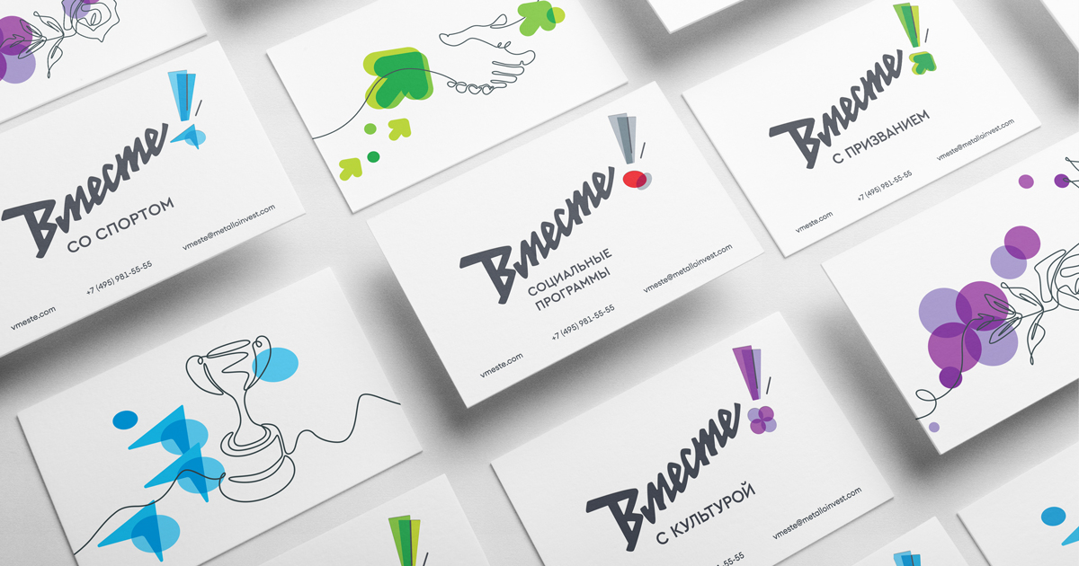 Архитектура «Вместе» включает разные направления: «Вместе со спортом», «Вместе с культурой», «Вместе с призванием». Логотип говорит, что «Вместе» — это просто, и для жителей городов строго восклицательно. Дифференциация направлений программы происходит благодаря использованию модулей в палитре фирменных цветов.