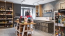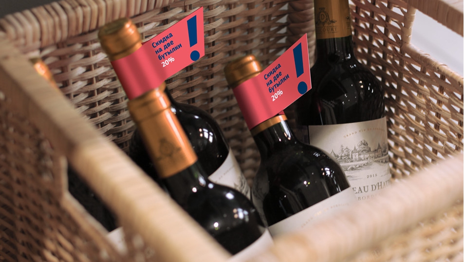 Бренд растёт из онлайна в оффлайн, эта особенность отразилась в оформлении ритейла — гармоничное сочетание элементов из мира digital (экраны, терминал, матовое стекло, белый металл, навигация по рейтингам и цене) и традиционного мира вина (дерево, стекло, бокалы, зелень).