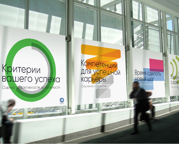 Были разработаны название и слоган системы, единый визуальный стиль, элементы инфографики, а также web-интерфейс. Благодаря новому подходу к позиционированию и яркому, интуитивно понятному дизайну, стало возможным донести суть сложного механизма карьерного роста в максимально простой и доходчивой форме.