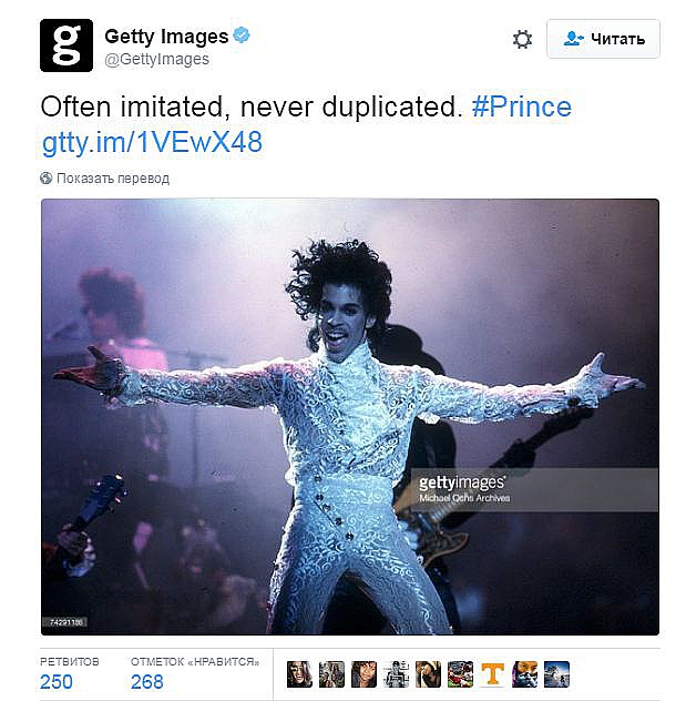 Аналогичным образом поступили бренд Hamburger Helper и производитель алкогольно-энергетических напитков Four Loko. Оба признали, что их посты были слишком легкомысленны и привлекали внимание к брендам, а не к трагическому событию. Adweek признал неуместным твит GettyImages — фотобанк разместил фотографию Принса со своим логотипом.