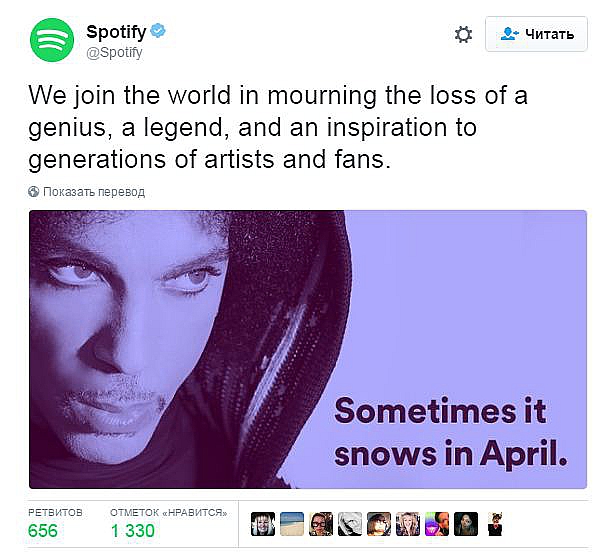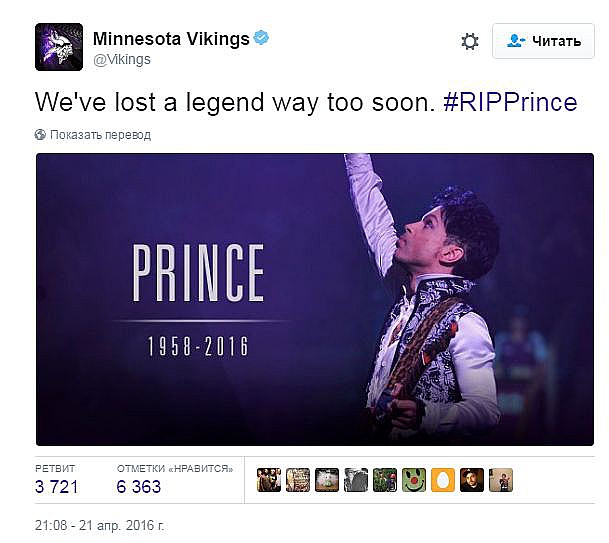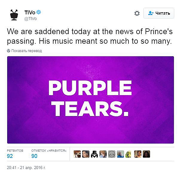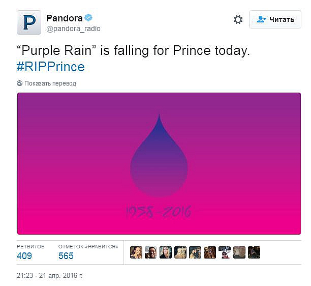 Впрочем, не всем брендам удалось соблюсти приличия. Некоторые компании все же пересекли ту грань, за которой начинается спекуляция на громком событии. Так, производитель сухих завтраков Cheerios разместил изображение с надписью «Rest in peace», где точкой над i была их продукция. Вскоре твит был удален. General Mills, владелец бренда из Миннесоты, сказал изданию Ad Age, что публикация могла быть неверно истолкована. Твит убрали из уважения к Принсу и трауру, сообщили в компании.