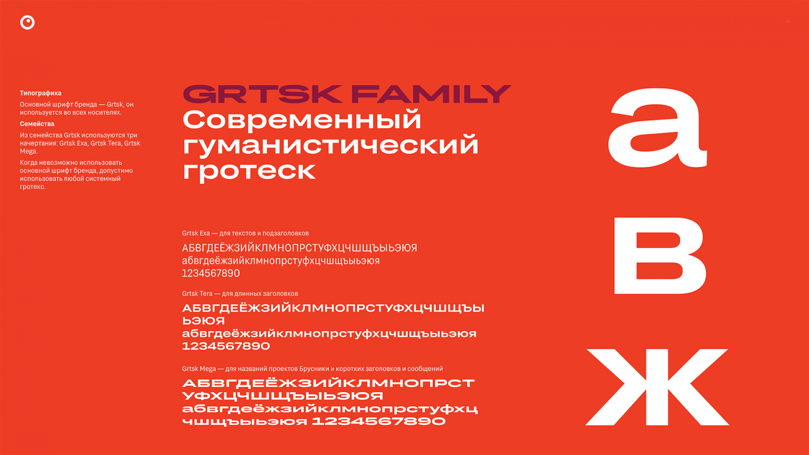 Для шрифтовой части логотипа креаторы выбрали широкое, динамичное и геометричное начертание Grtsk, подчеркивающее энергичность бренда.